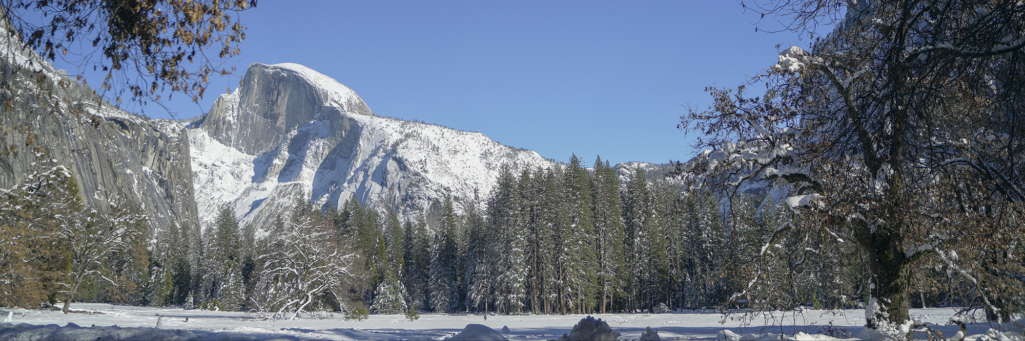 The classic Lower Yosemite Fall trail is a great winter hike for families as it is a short and easy trail to Lower Yosemite fall. Part of North America's tallest waterfall, Lower Yosemite Fall is the final 320-foot drop of the waterfall. The trail is wheel-chair accessible, pet-friendly, and great for visitors of all ages!