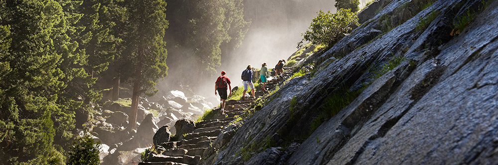 - Moderate: Mist Trail to Vernal Fall footbridge (1.6 miles, 1-1.5 hours round trip)